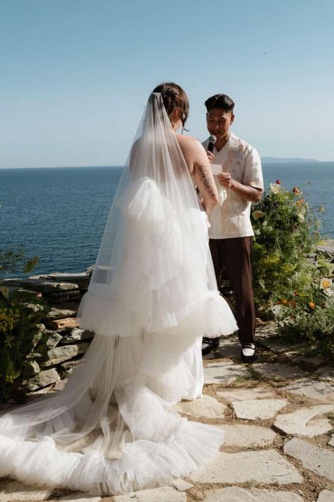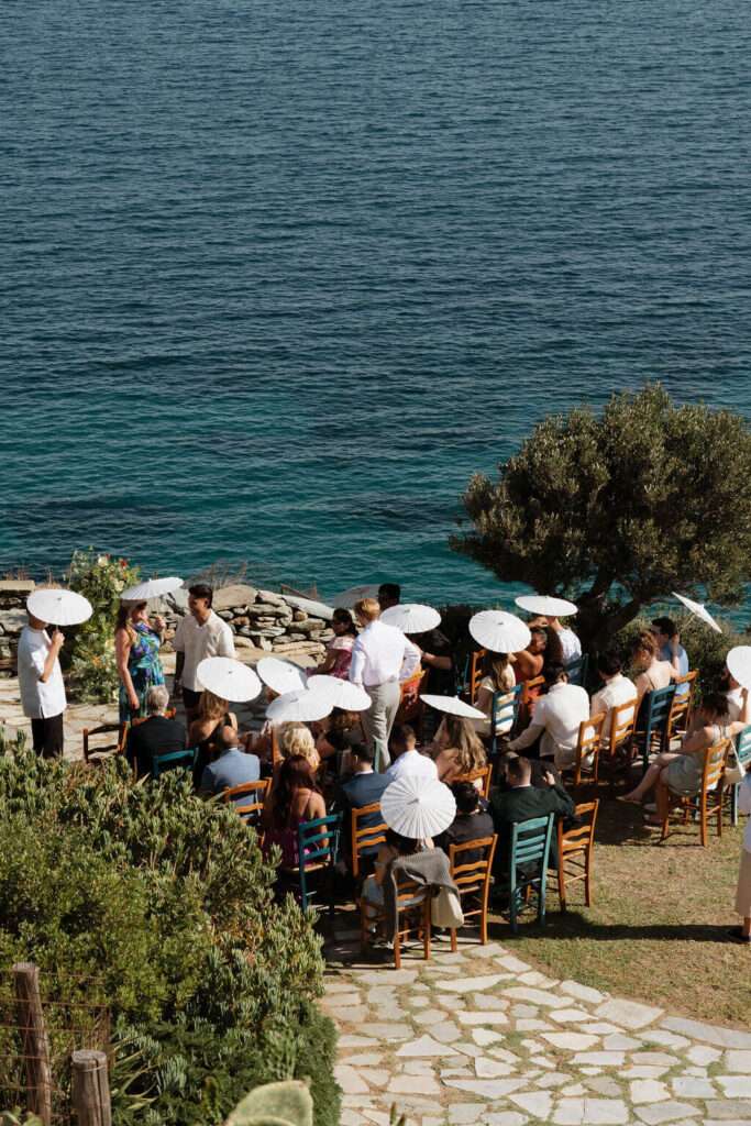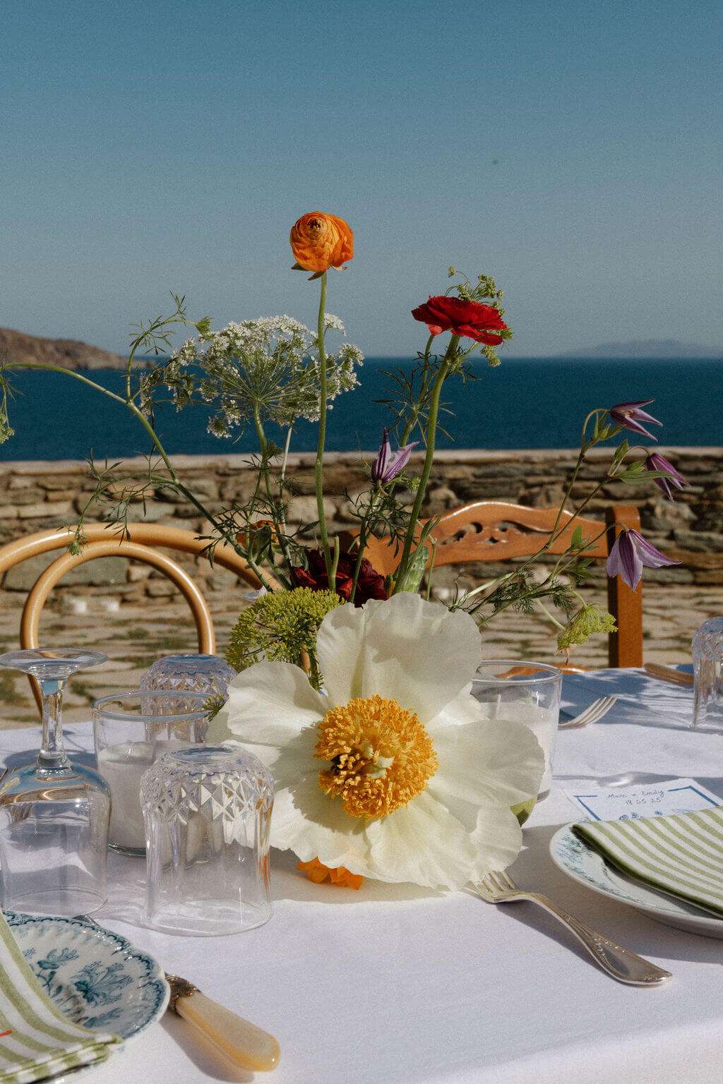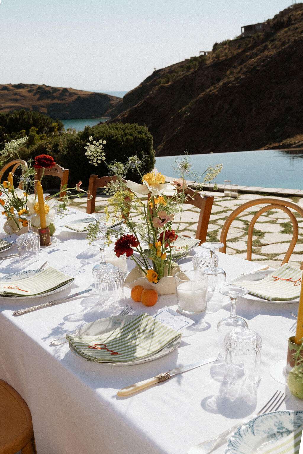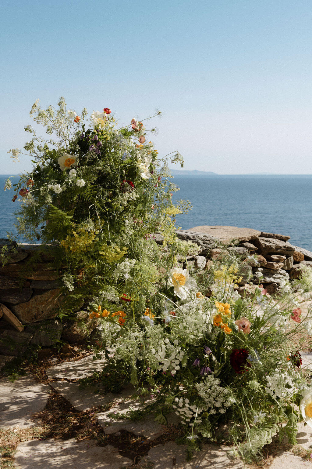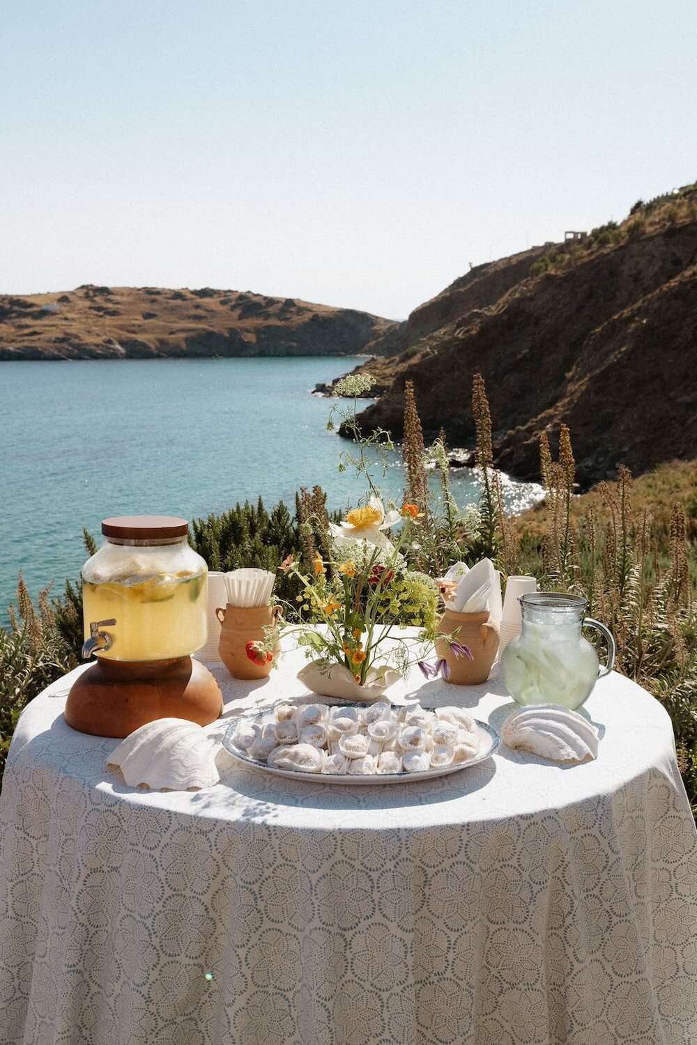 Surrounded by the wild, authentic landscapes of Andros and overlooking the endless blue of the sea, their celebration unfolded with quiet beauty. The setting itself was breathtaking, but it was the thoughtful details that made the day truly unforgettable.