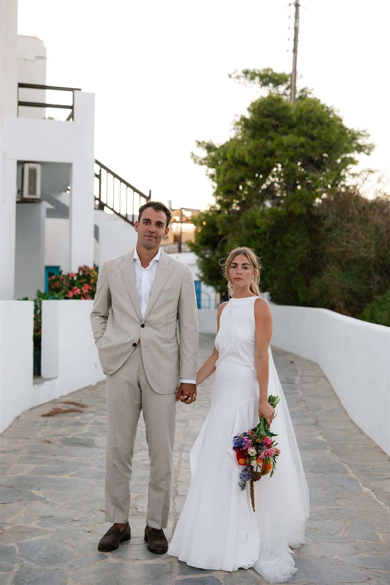 Tatiana and Anastasis’ wedding on Iraklia was a celebration of simplicity and connection. Living in Switzerland, the couple chose to return to their favorite Greek island — a quiet Cycladic gem where they’ve spent their summers for the past years. Iraklia has become their personal retreat, a place to unwind and reconnect by the sea, making it the perfect setting for their wedding. The day reflected everything they love about the island: relaxed elegance, natural beauty, and that effortless Mediterranean charm that turns every moment into something timeless.