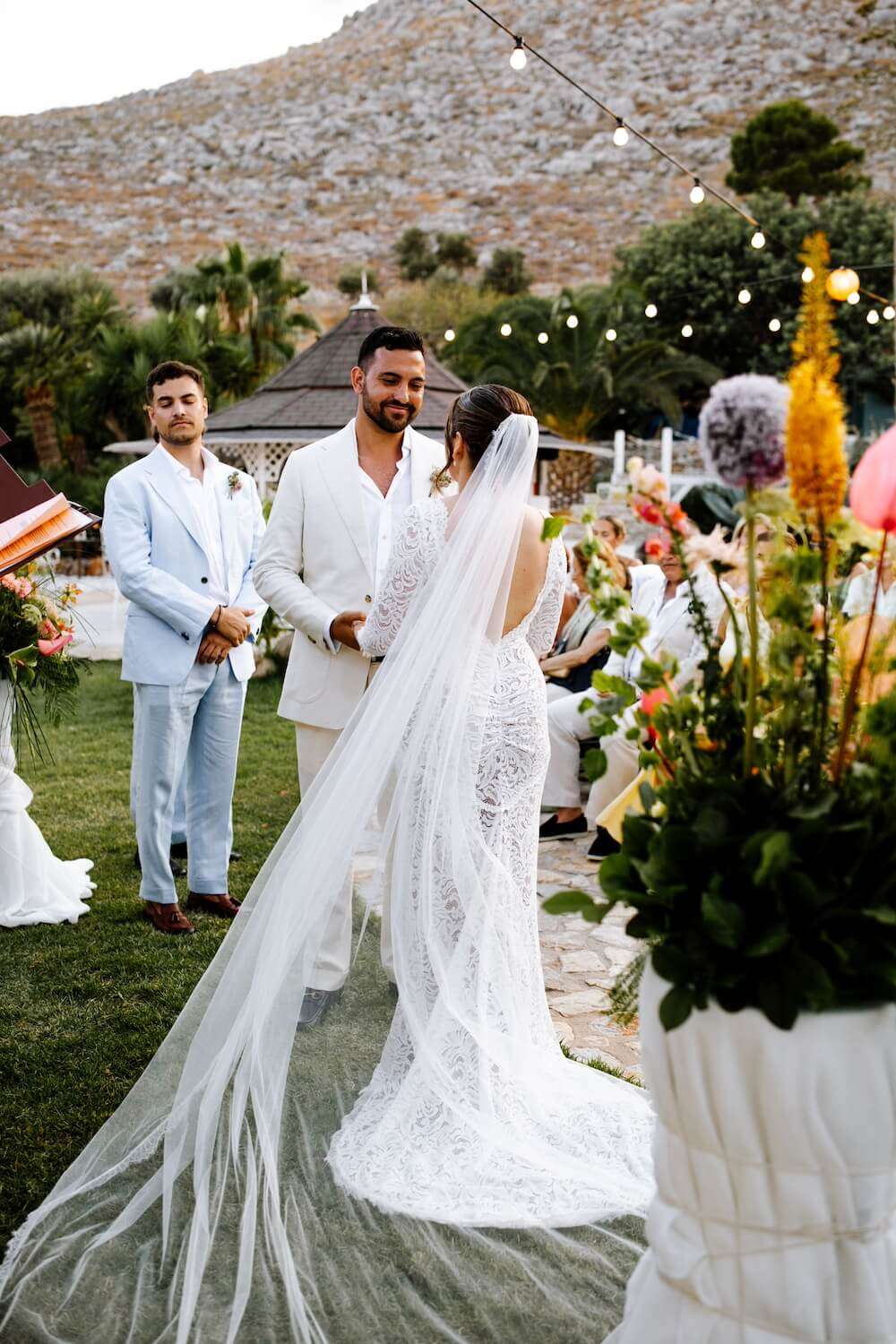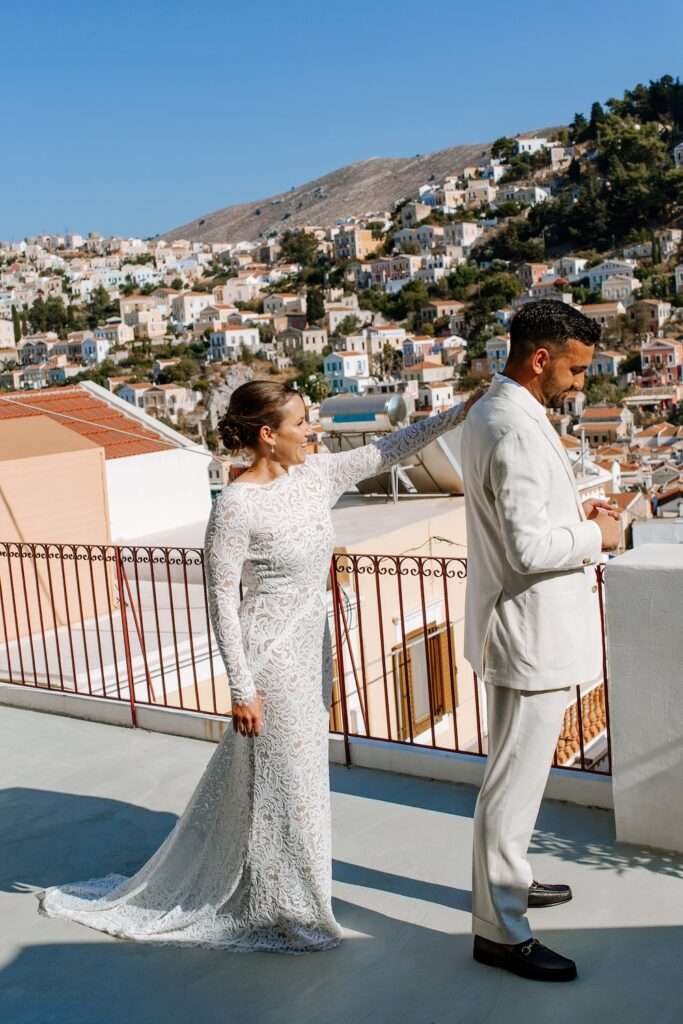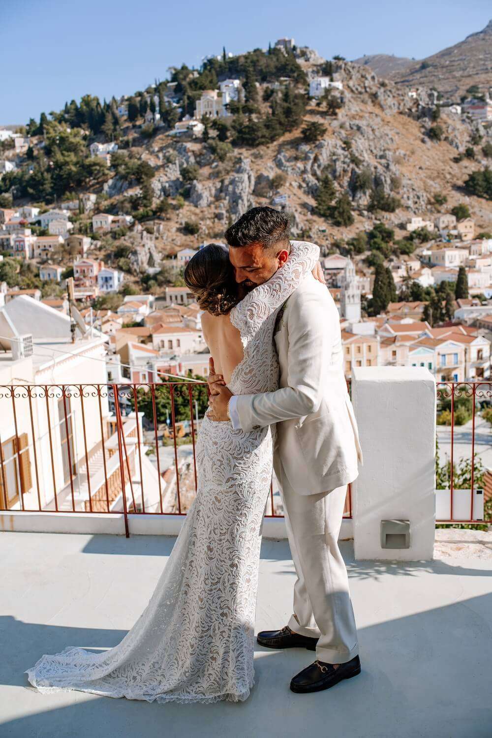 On the secluded shores of Symi, where the land yields only to the sea and silence stretches uninterrupted, Rachel and Jonathon began their forever. Their wedding unfolded in a place untouched by roads or routine—reachable only by boat, as if the journey itself was a quiet ritual, guiding loved ones into something rare and deeply personal.