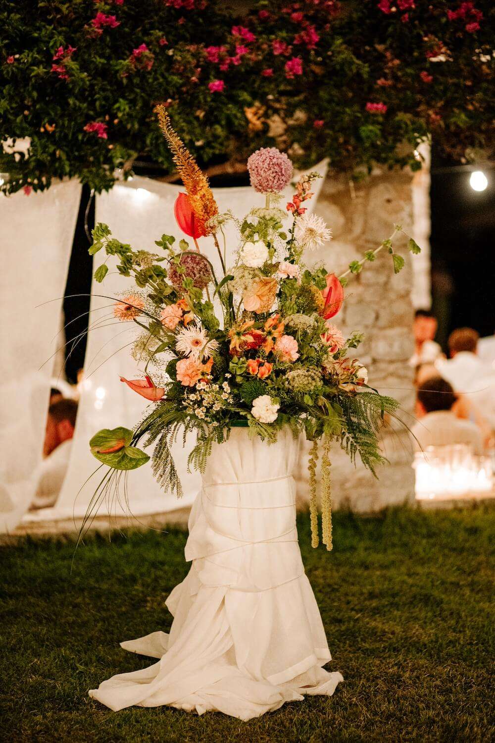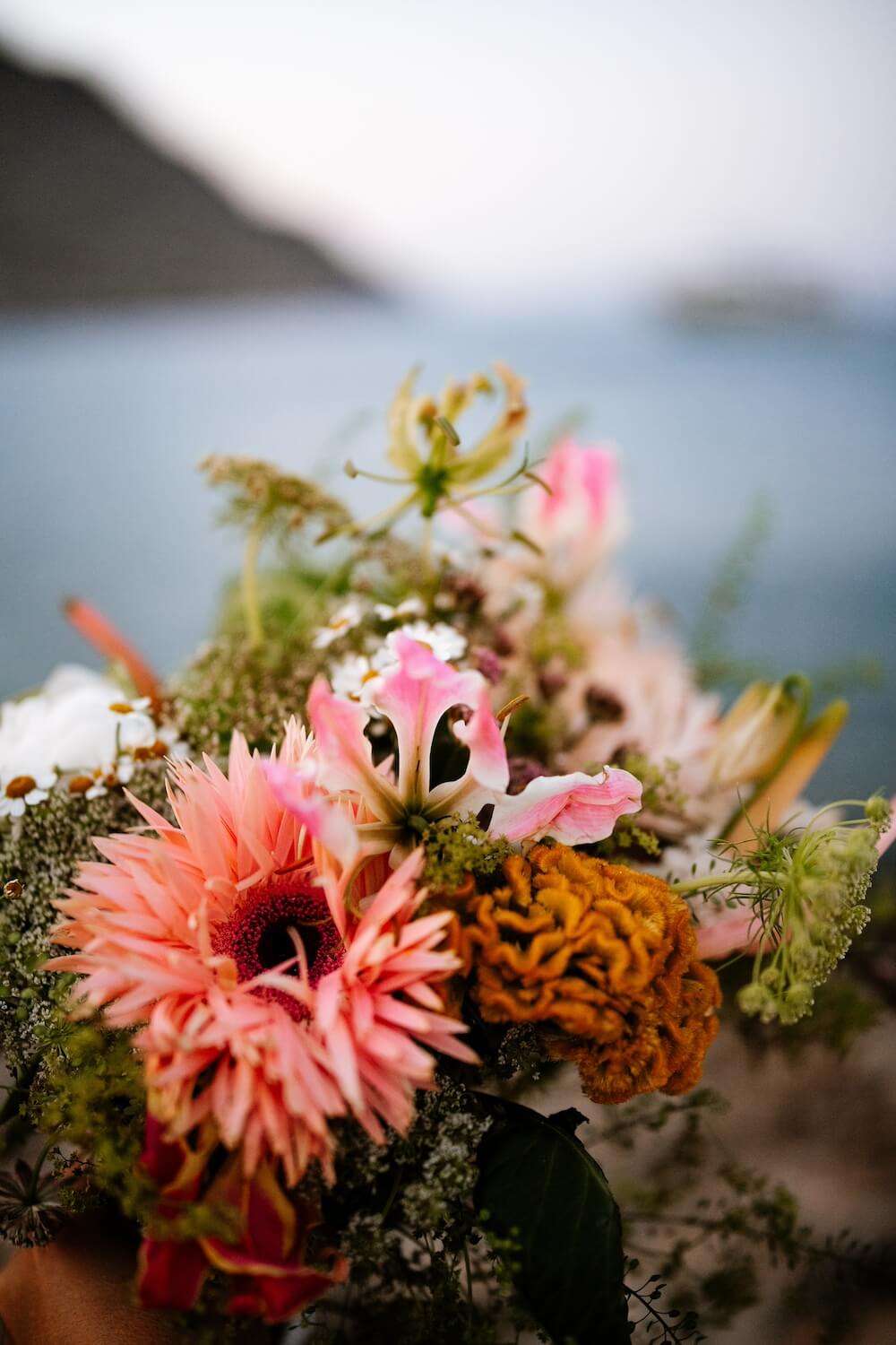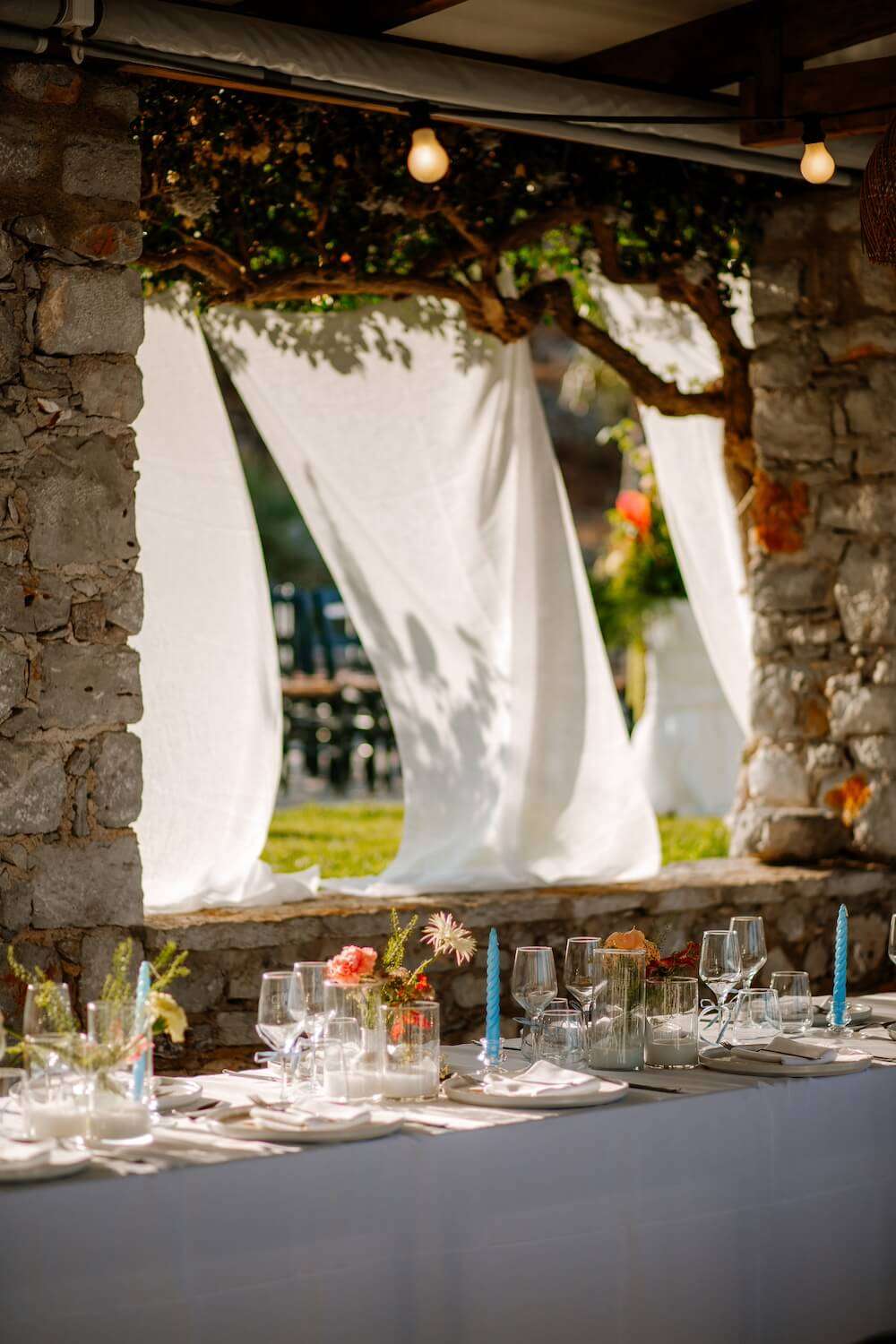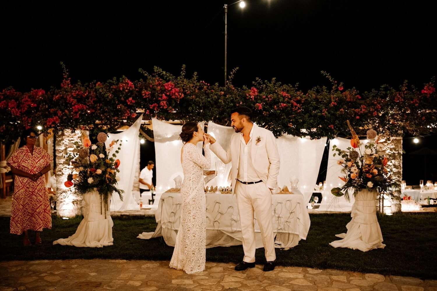 Against the raw, rugged beauty of the island—sun-bleached stone, wild earth, and endless blue—their celebration came alive in a burst of color. Vibrant florals danced in the breeze, rich fabrics caught the golden light, and every detail felt like a deliberate contrast to the untamed surroundings.