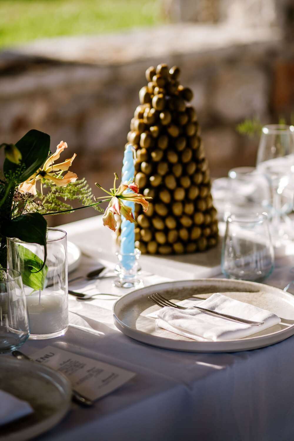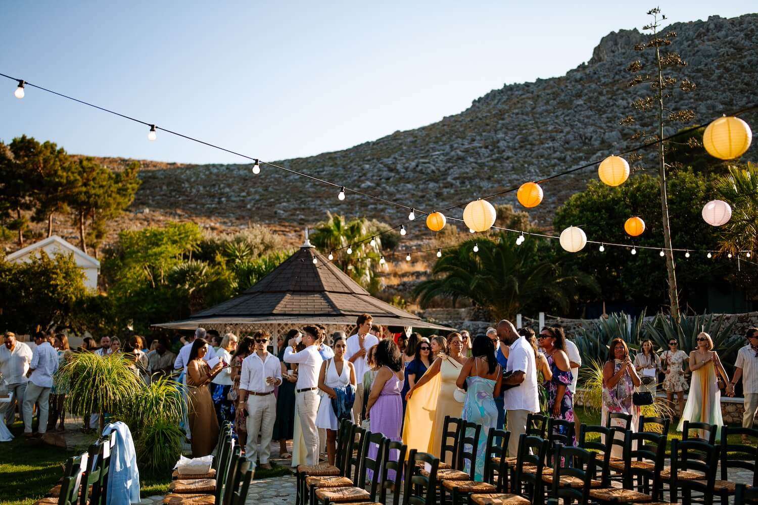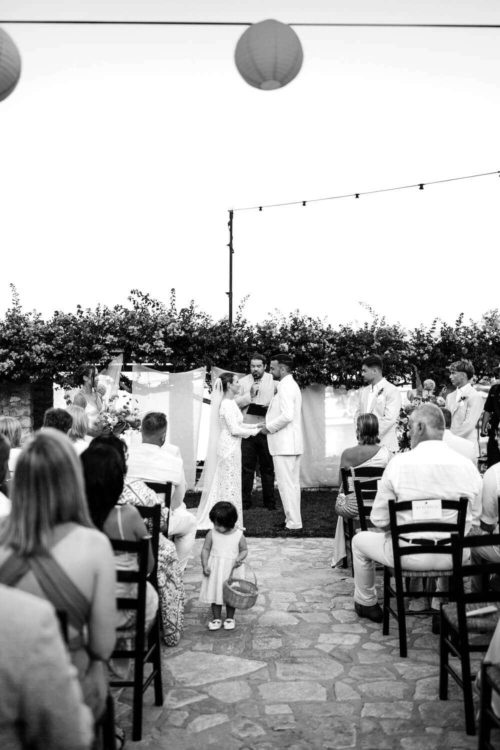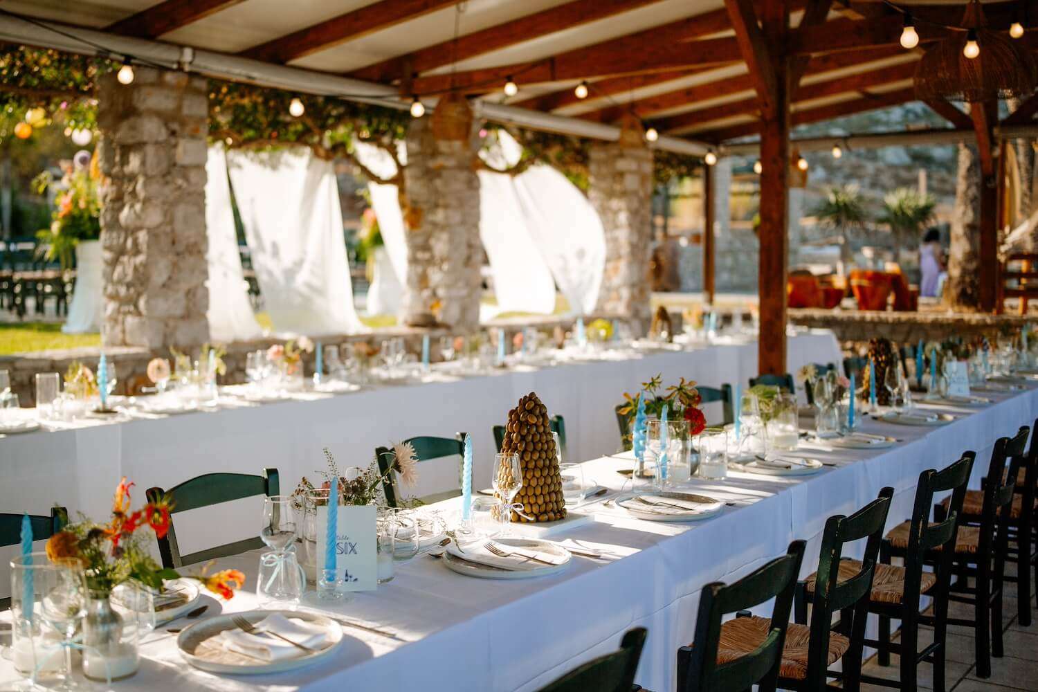 Against the raw, rugged beauty of the island—sun-bleached stone, wild earth, and endless blue—their celebration came alive in a burst of color. Vibrant florals danced in the breeze, rich fabrics caught the golden light, and every detail felt like a deliberate contrast to the untamed surroundings.